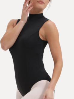 De hoge hals en prinsessennaden geven dit model een nette, lange lijn. Dat is handig voor lessen waarin houding en bovenlichaam goed zichtbaar moeten blijven. Het model ziet er modern uit, maar blijft rustig genoeg voor groepen.