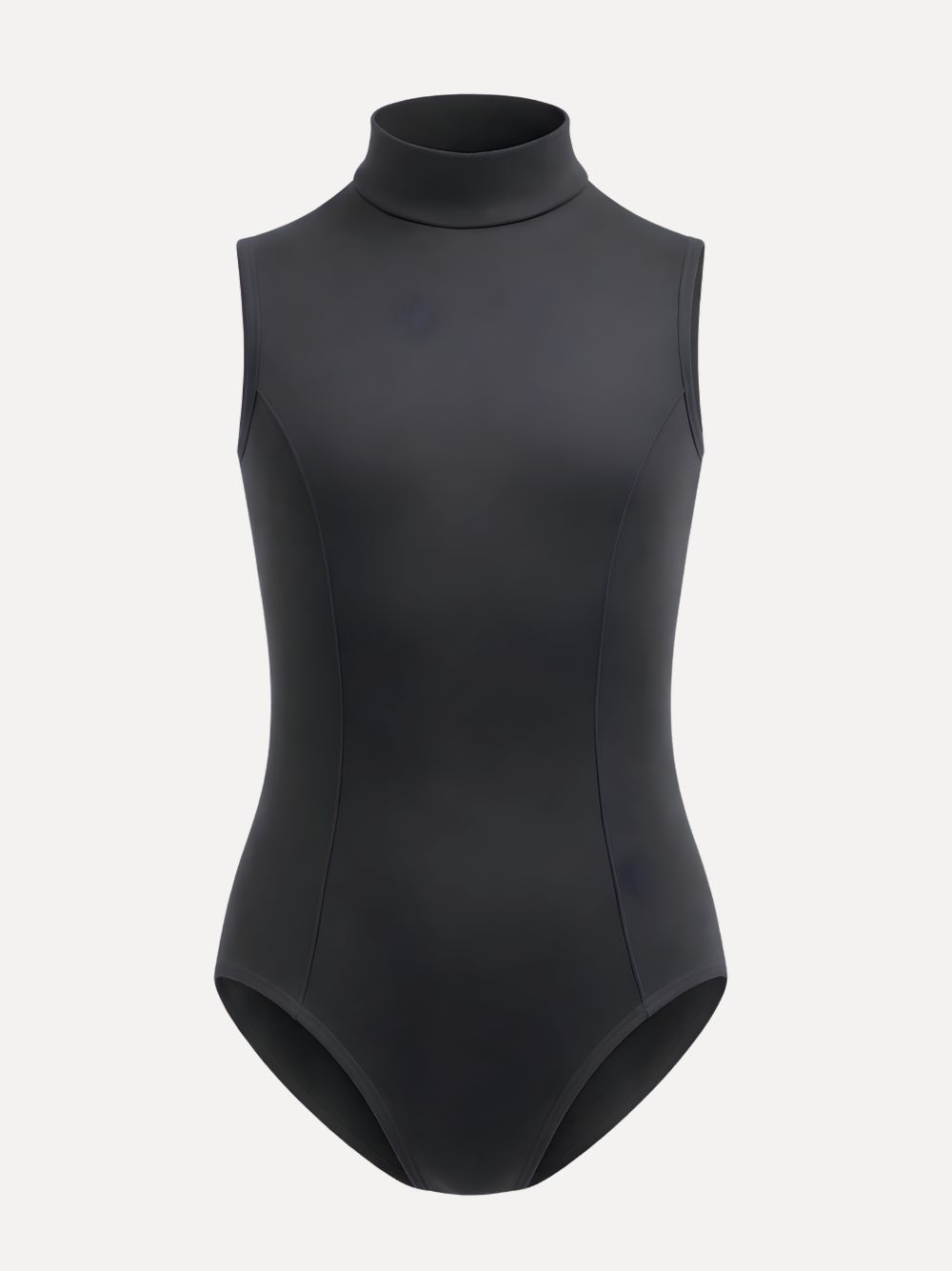 Omdat het pak mouwloos is met hoge hals en open rug, heeft het een duidelijk ander karakter dan klassieke lespakjes, wat het commercieel goed onderscheidbaar maakt.